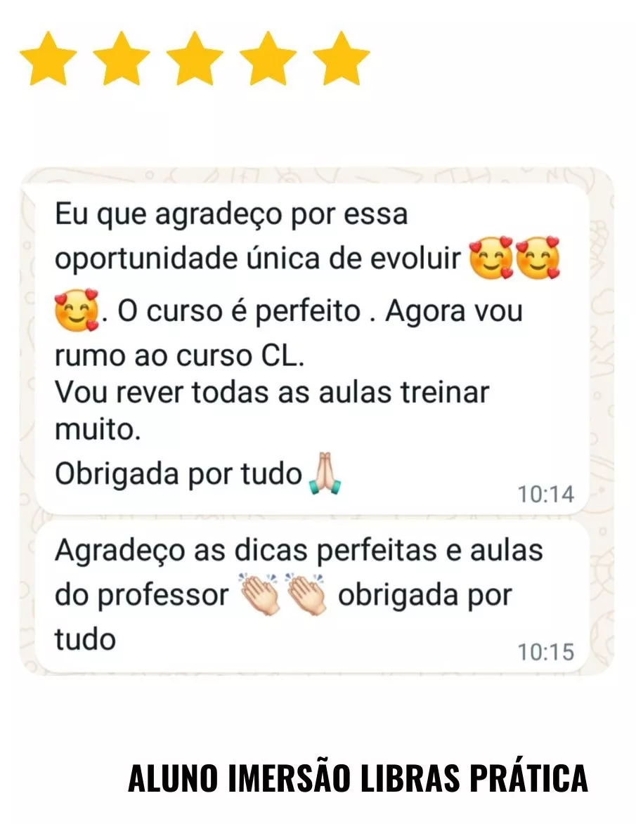 A Imersão Libras Prática é validada por mais de mil alunos para você conseguir sinalizar com total confiança.