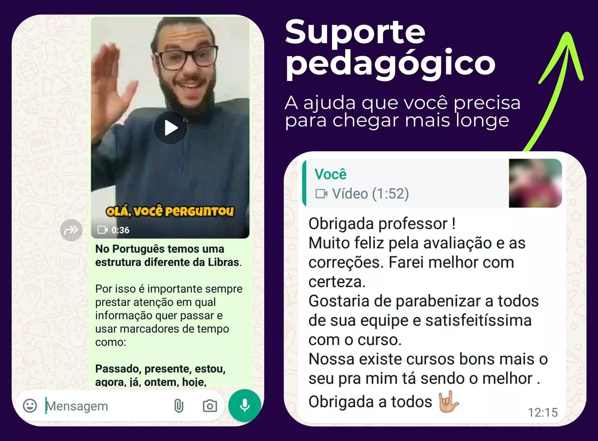 Você irá se sentir em uma sala de aula comigo! Irá praticar e tirar dúvidas sobre contextos práticos da Libras.