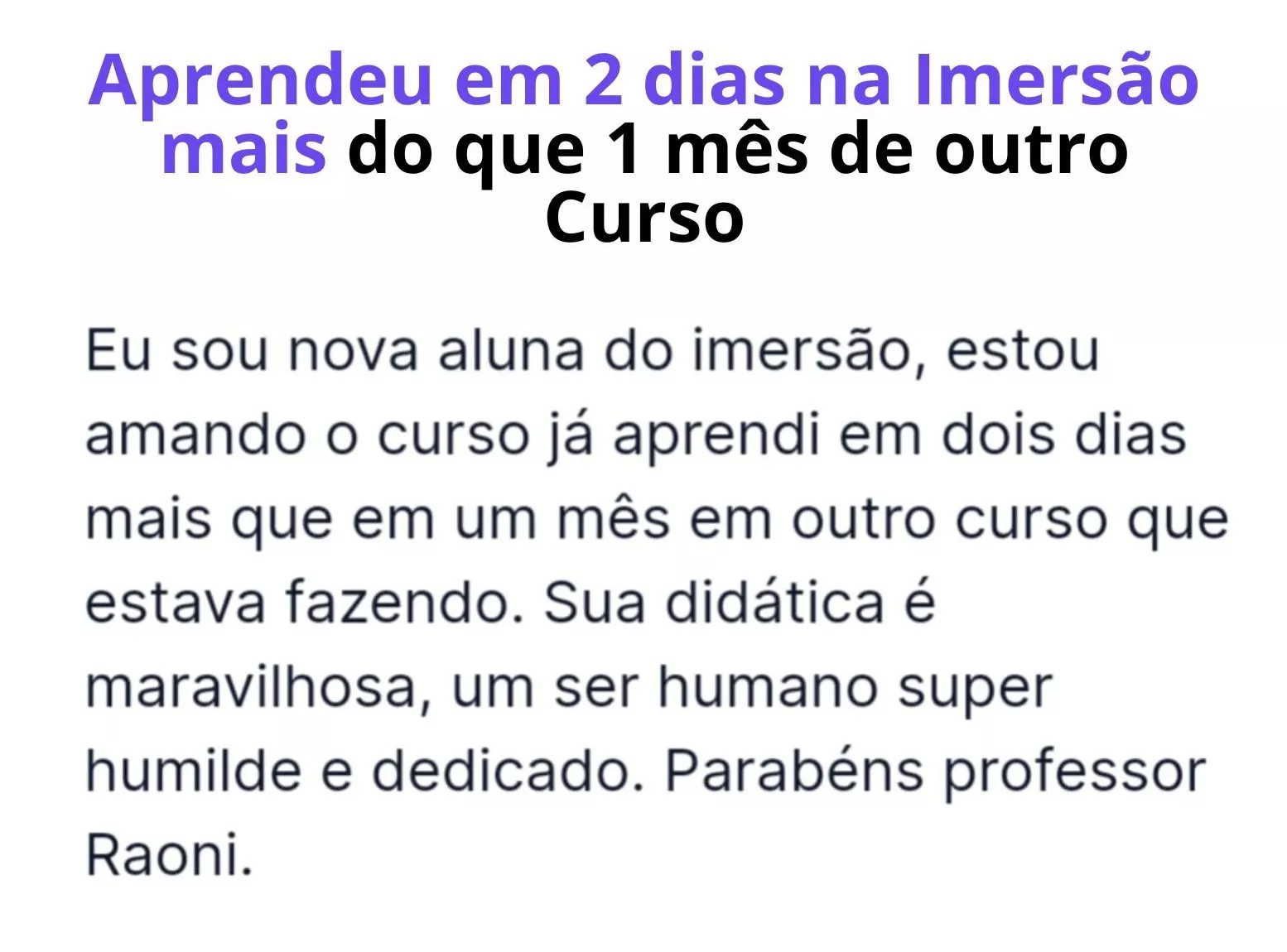 "Em outros Cursos, eu não conseguia entender. E o seu Curso me ajudou a ver, compreender e formar frases. No seu curso o foco é o aluno. As aulas de interação são muito importante".